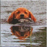 Con 12 semanas, “Xeon” (Fiesty Red Spitfire)* disfruta de una gran iniciación al agua con su dueña, Diane Glassmeyer, que lo hace divertido.